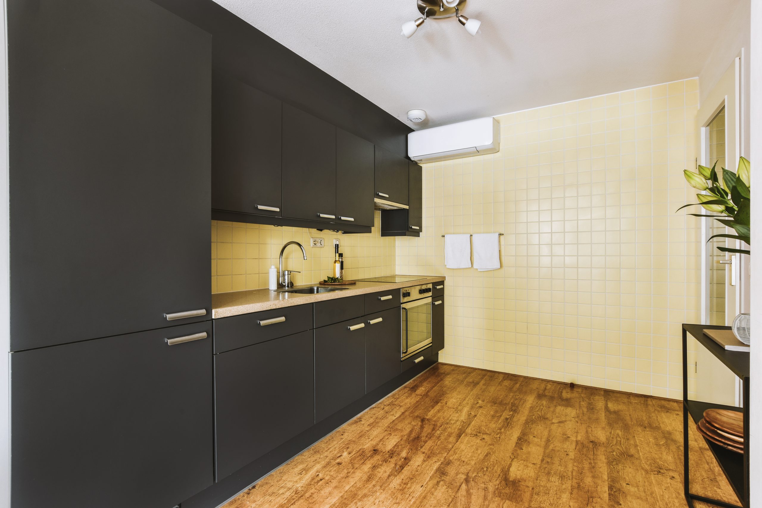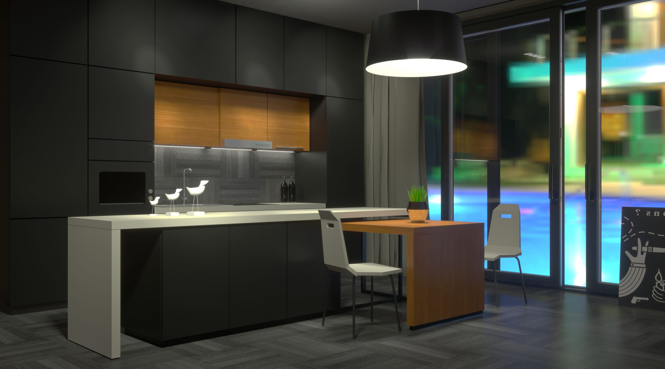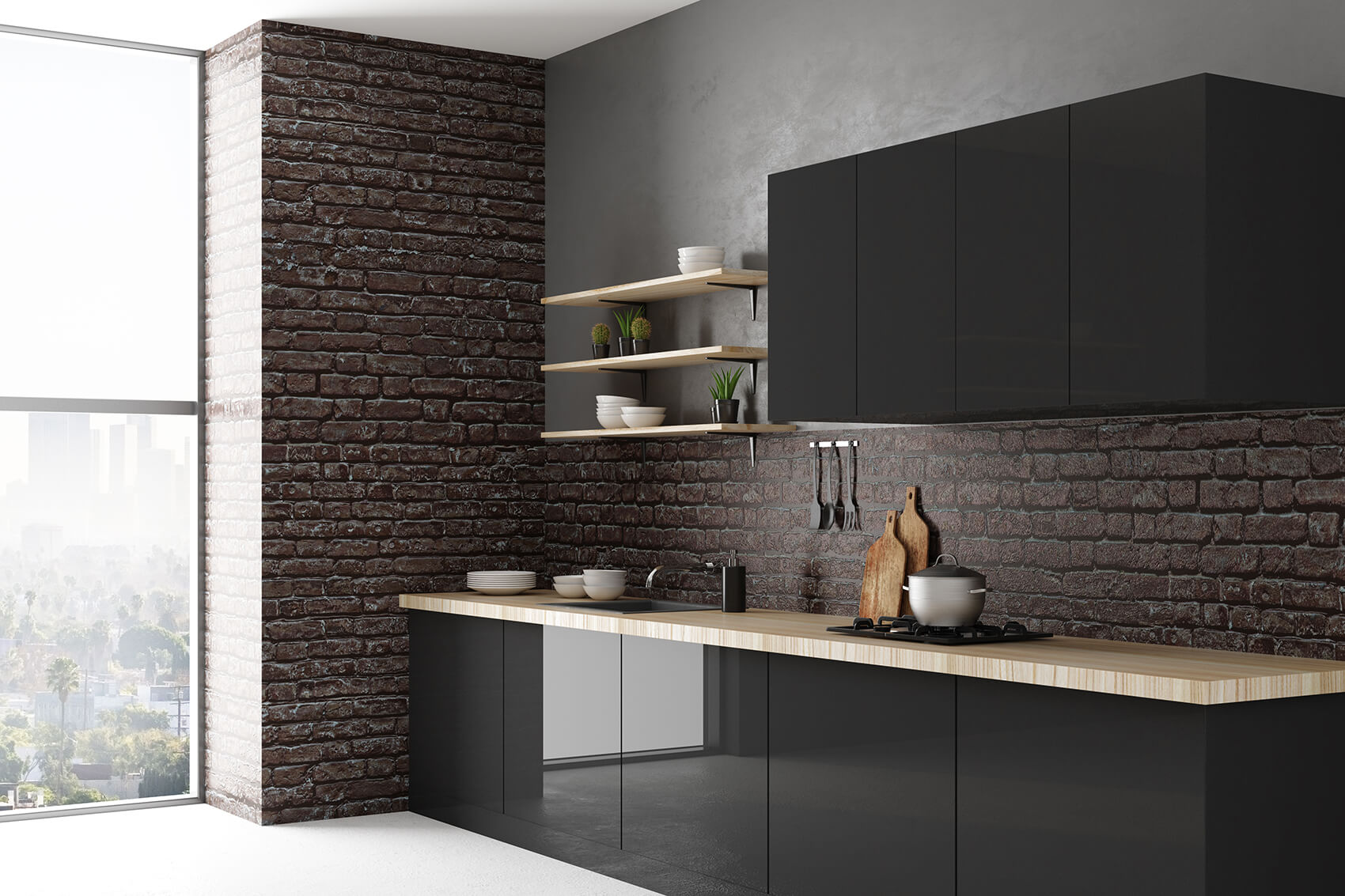 Modern dark kitchen with window