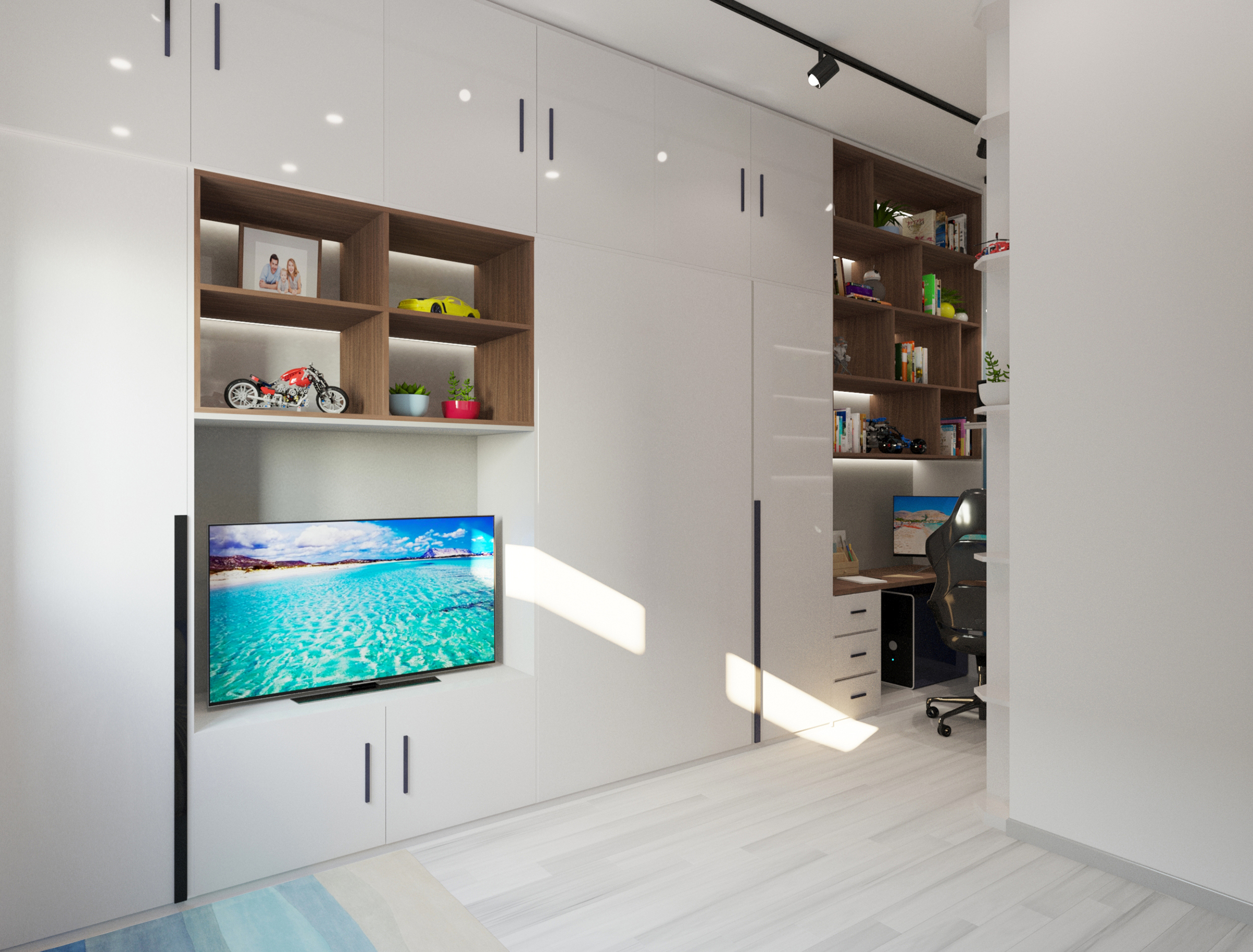 Cabinet furniture in the living room. Modern minimalism