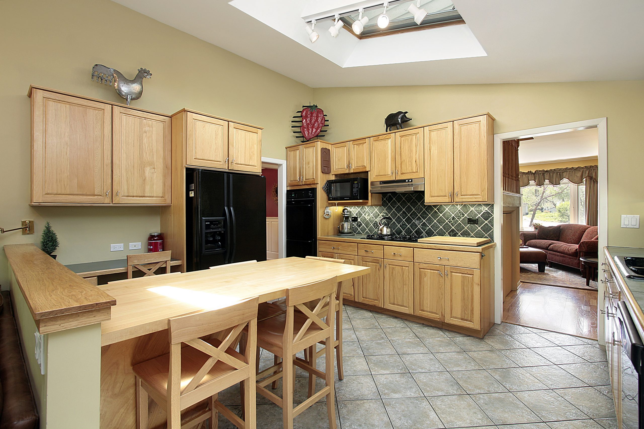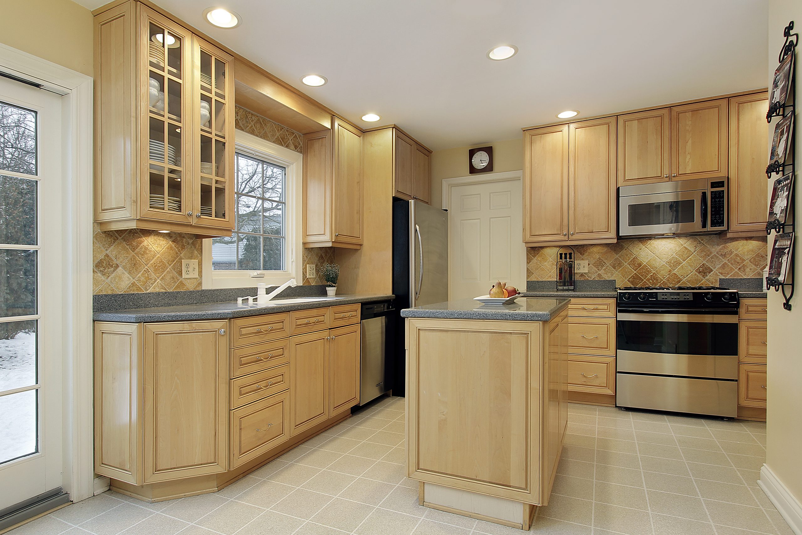 Kitchen with oak cabinetry