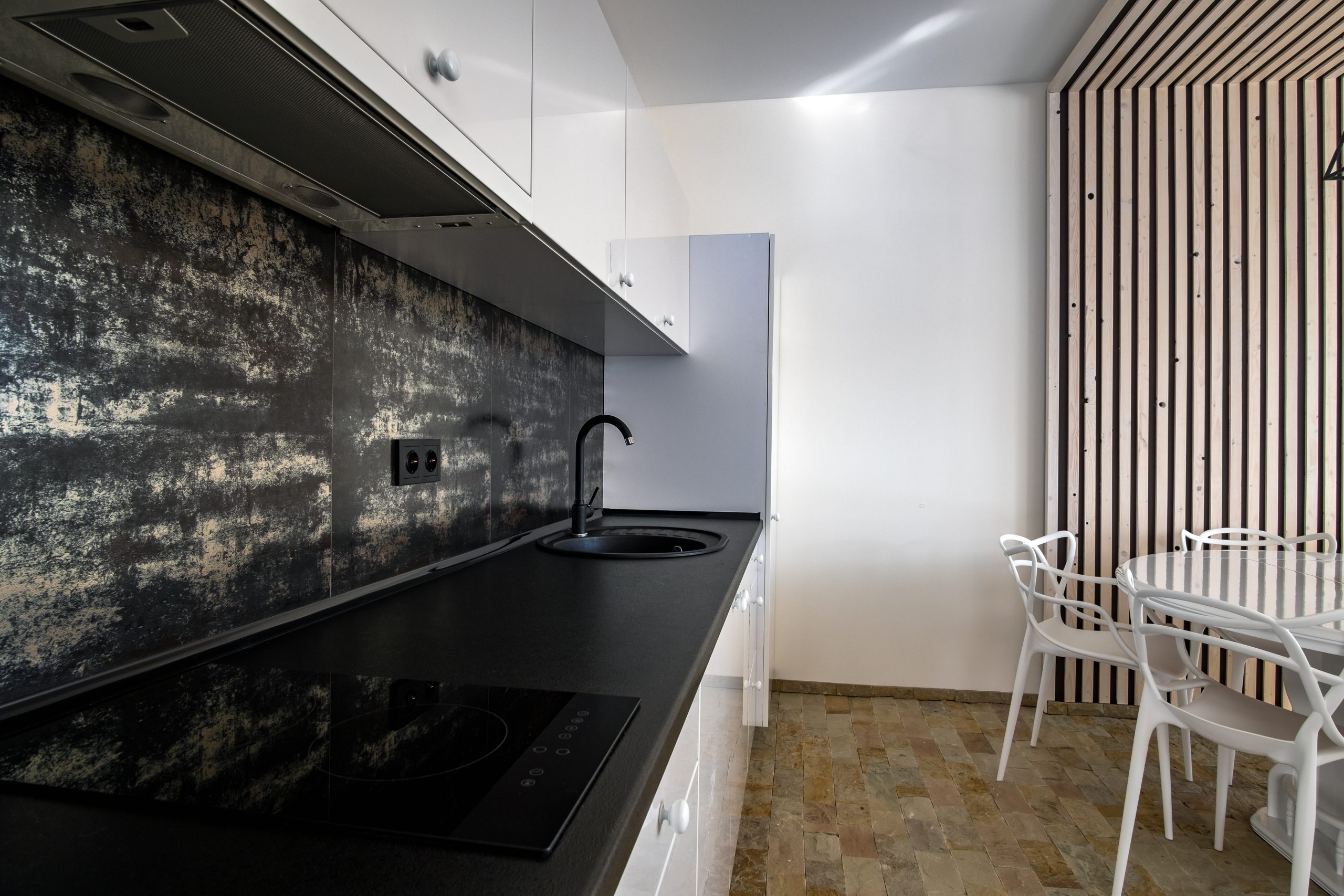 Kitchen and dining zone in modern apartment