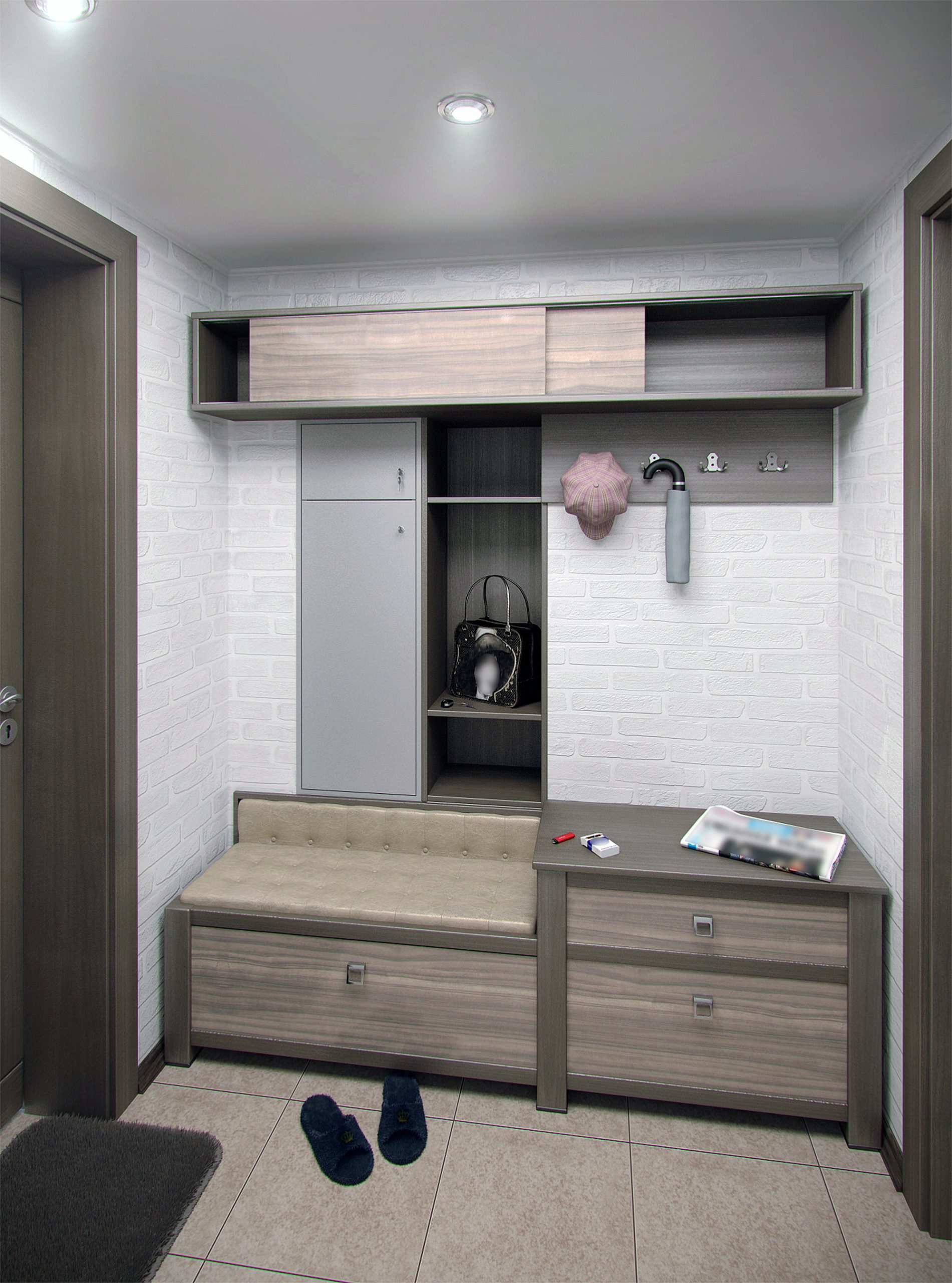 Minimalism hallway interior, 3d render